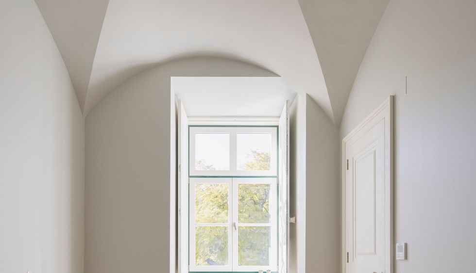 A two-bedroom apartment with vaulted ceilings, light wood floors and straight lines that illuminate and expand the space, while renovated antique details such as skirting boards and embossed doors give it a unique elegance. A bright living room with a west-facing balcony overlooking Praça do Rossio (32m2), open space to the equipped kitchenette, a suite, a bedroom and two bathrooms complete the apartment.
